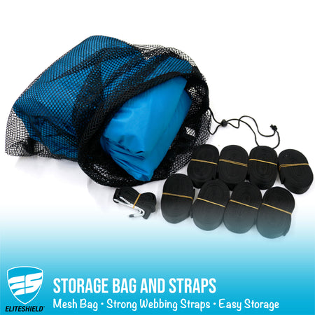 Easy to Use: Includes 8 webbing tie-down straps, 2 bow and 2 stern straps with hooks, and a mesh storage bag.