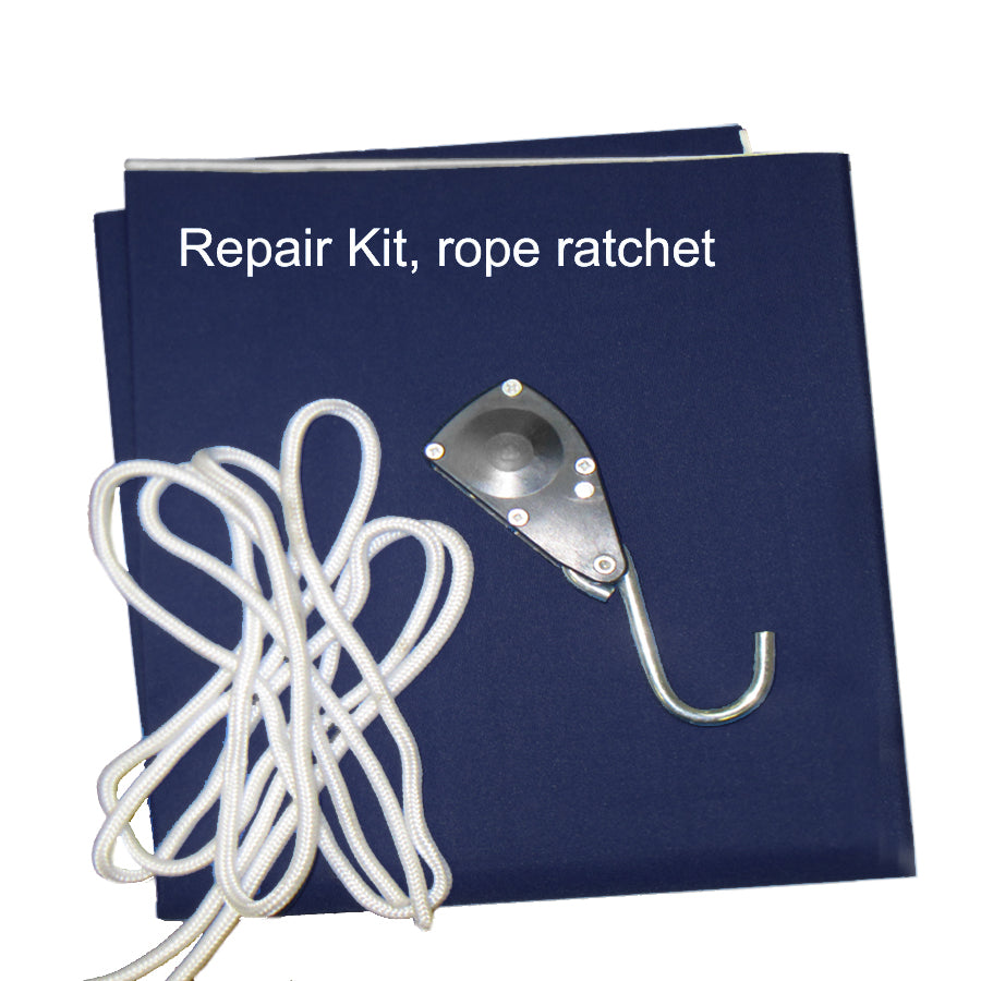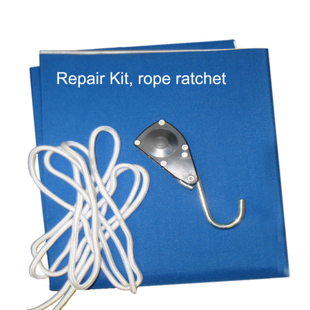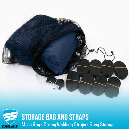 Complete Accessory Kit: Includes boat tie-down straps, a rope ratchet, a large self-adhesive reinforcement patch (3.8'L x 1.8'W), and a breathable mesh storage bag.