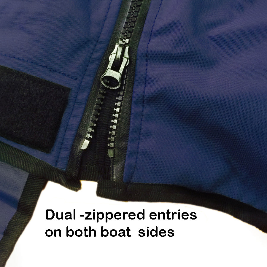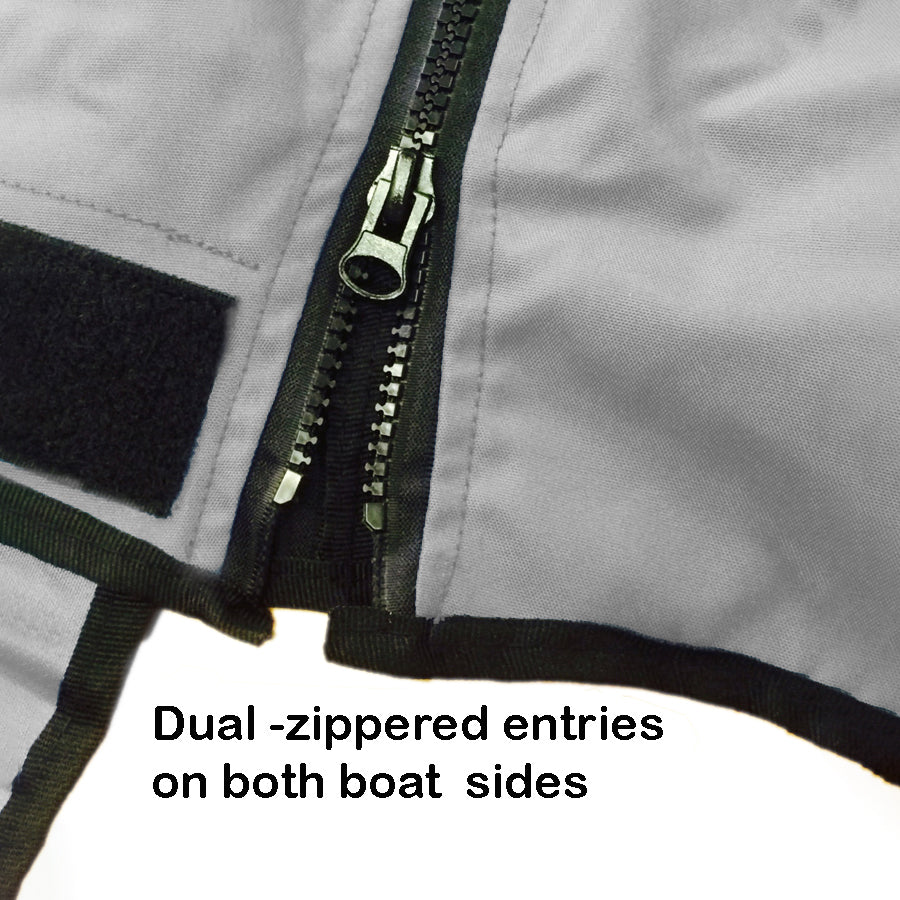 Easy Access While Covered: Double-zippered entries on both port and starboard sides allow convenient access to your boat without removing the cover.