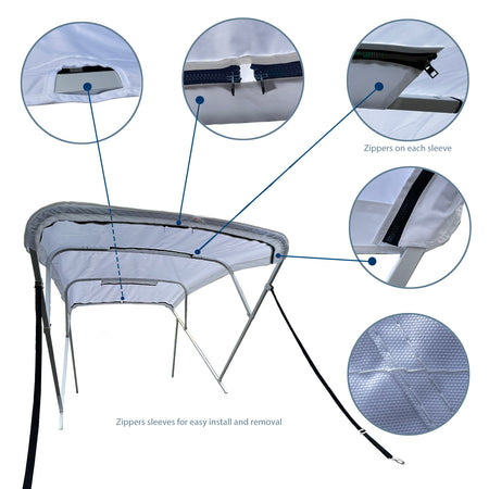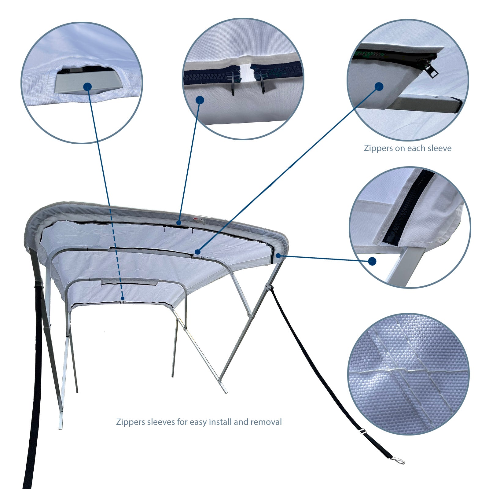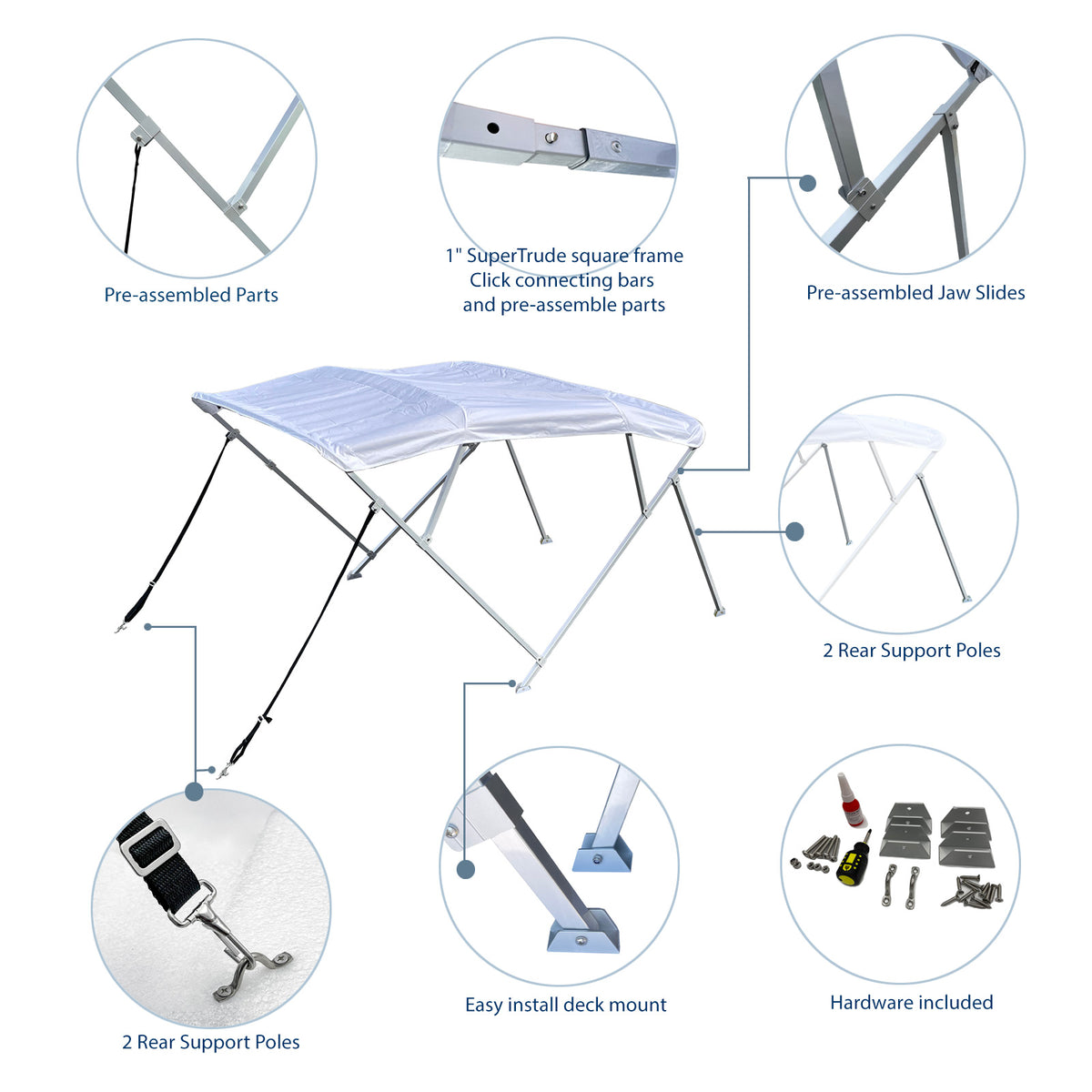 - STRONG AND DURABLE SQUARE FRAME 4 BOW BIMINI TOP SET: Tough 1" square aluminum frames; Sturdy 4 bow frame with rust resistant stainless-steel connection bolts and mounting screws that offers superior rigidity