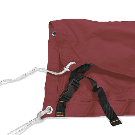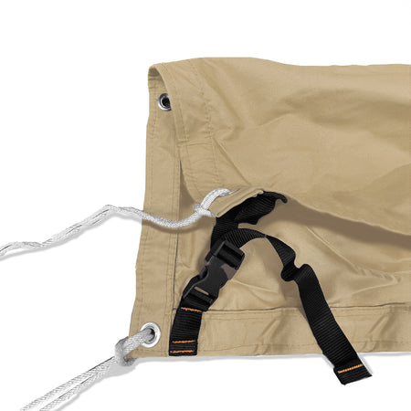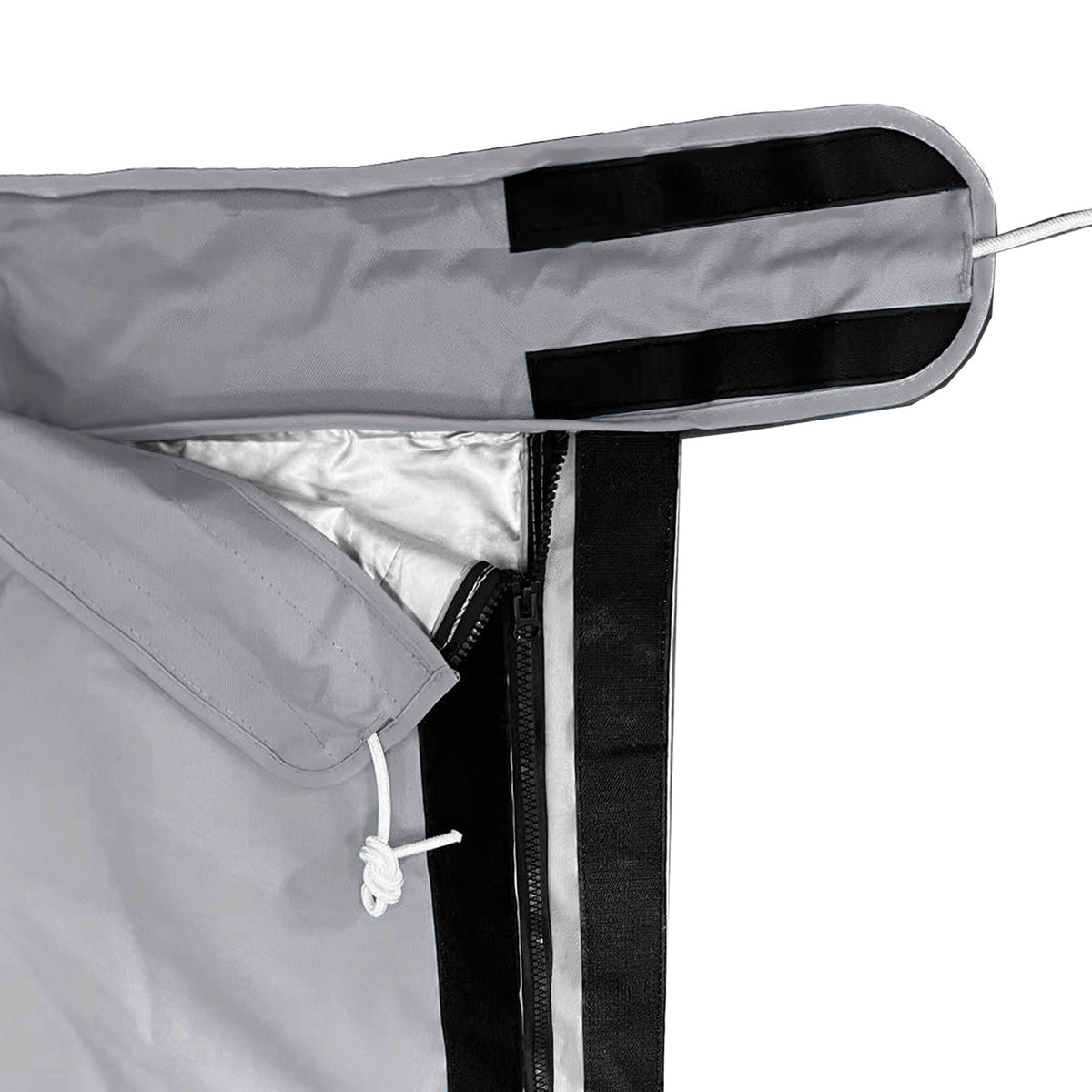 - [Secure fit]: Heavy duty #10 zipper along the mast end with a tie-up string at the top, covered by a storm flap with 2" wide Velcro closure to protect the zipper and keep the water out; Adjustable webbing tie-down straps with built-in buckles along the bottom edge of the boom for a proper fit and neat appearance