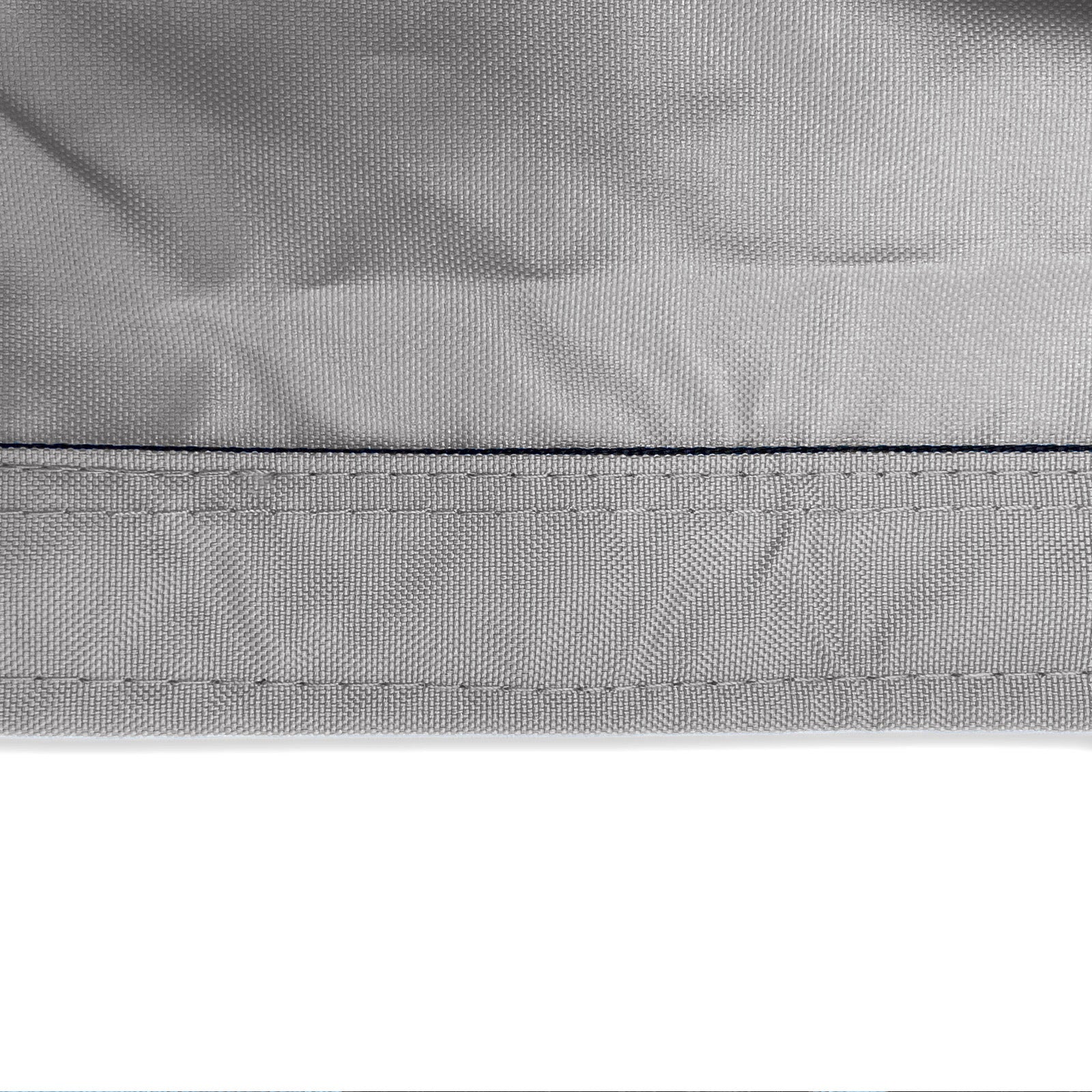 - [Durable]: Triple-layered hem and double stitching provide great reinforcement and ensure that the cover can withstand wear and tear over time; Extra silver UV reflective layer at the mast area prevents the heat from weakening and stressing the cover; UV resistant Polyester thread ensures the durability of the cover