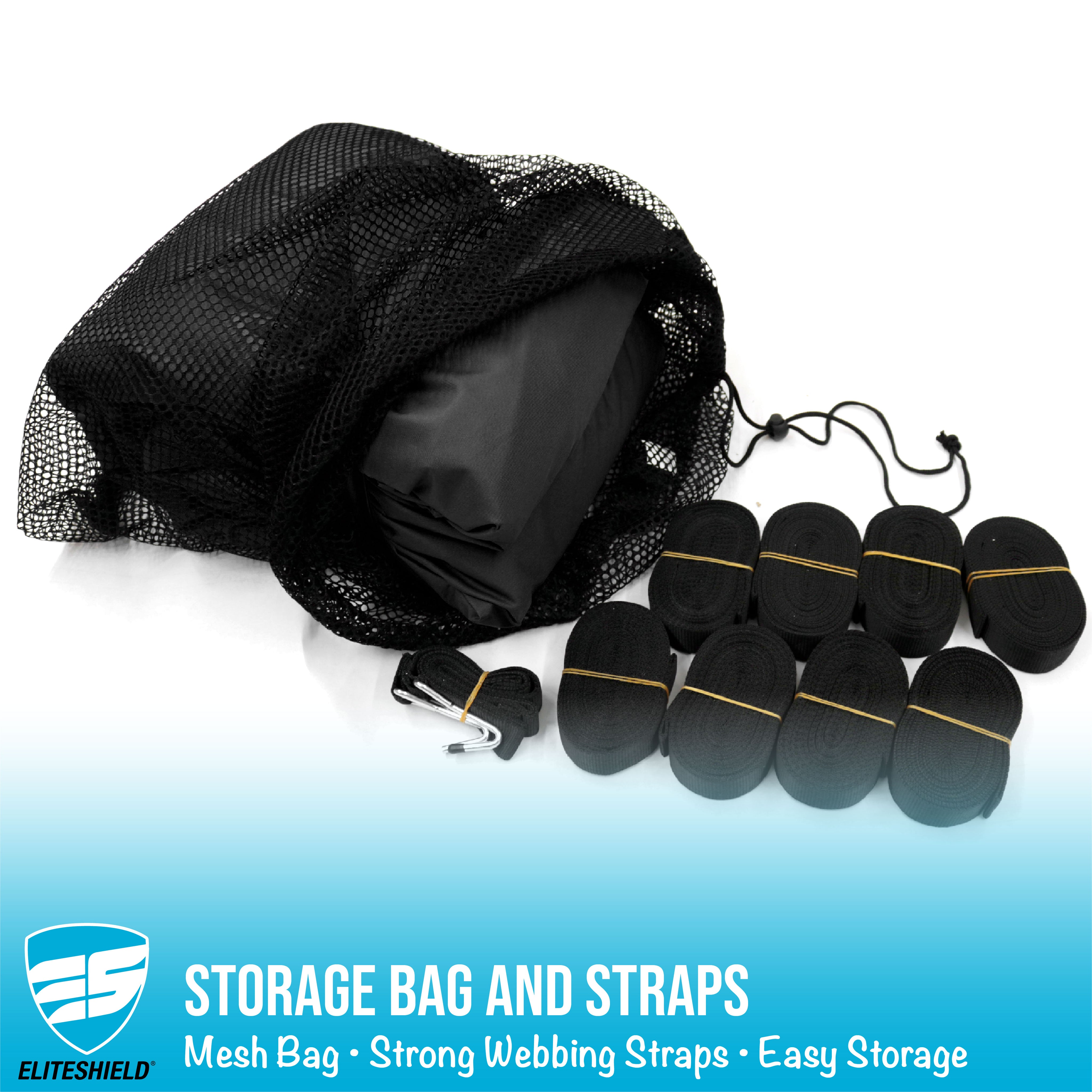 Complete Accessory Kit: Includes tie-down straps, rope ratchet, self-adhesive reinforcement patch (3.8'L x 1.8'W), and a mesh storage bag.