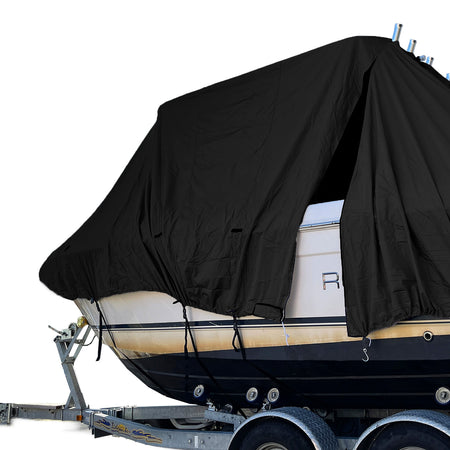 The TitanShield™ T-Top/Hard Top Boat Cover is designed to provide superior protection for your boat in all conditions. Crafted from 900D marine-grade polyester, this heavy-duty cover offers maximum resistance to sun, rain, snow, dirt, and pollutants. Ideal for T-top and hard top boats, it ensures your vessel stays safe and protected whether stored on a trailer or docked in the water.