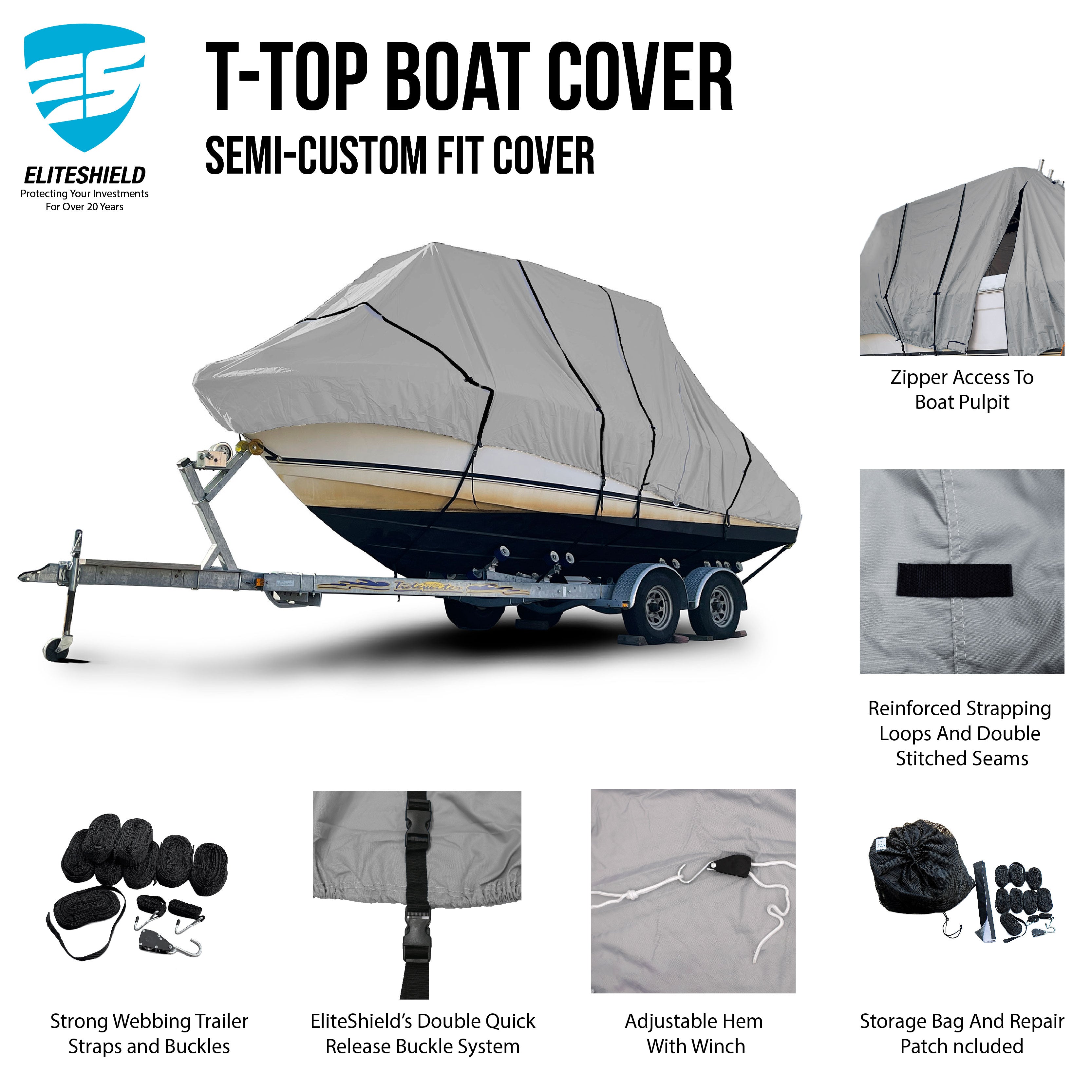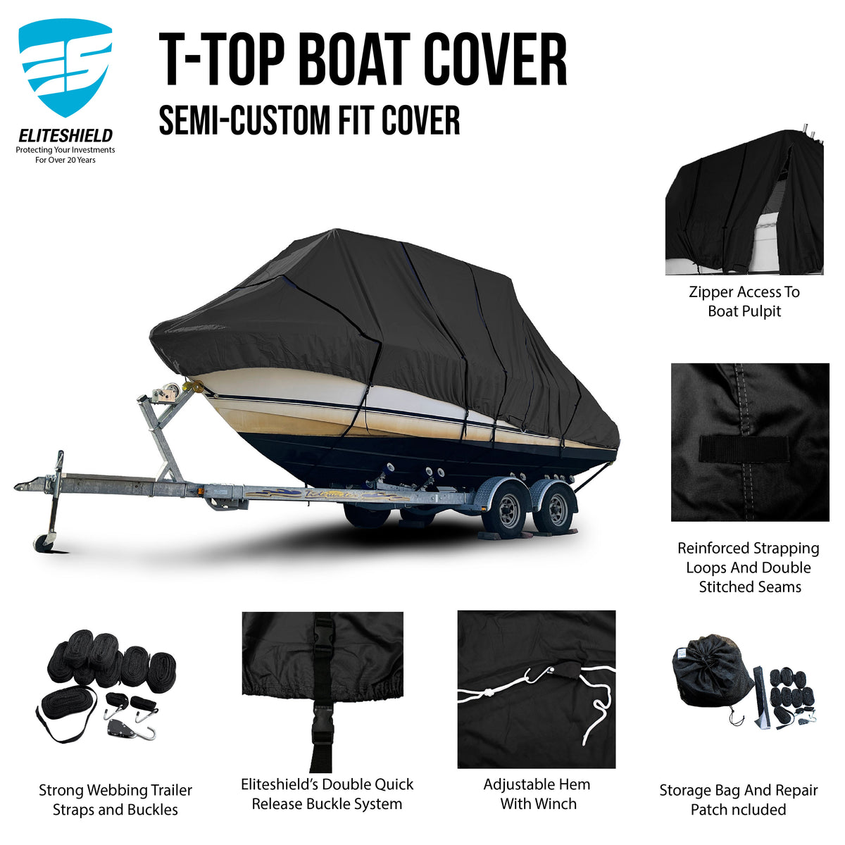 TitanShield™ T-Top/Hard Top Boat Cover – Premium, Heavy-Duty Protection for Your Boat